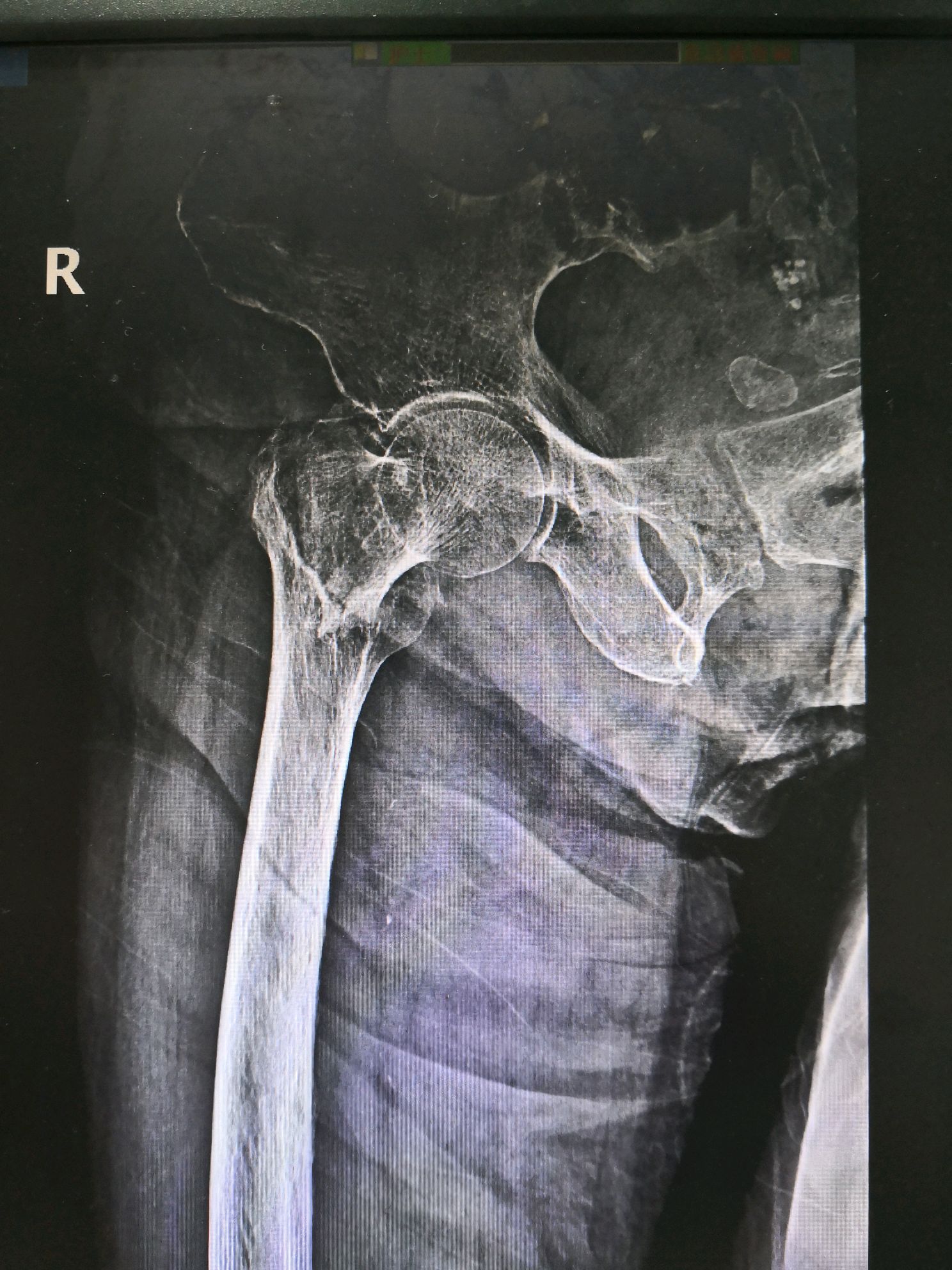 近2月收了5例股骨转子间骨折,都做了手术,手术效果都非常好。今天我们聊聊股骨转子间骨折是怎么回事。首先我们说说它的定义,股骨转子间骨折系指股骨颈基底至小转子水平以上部位所发生的骨折,为老年人常见的髋部骨折。我收这5例患者全部是摔跤所致 ,有的是在洗澡房摔的 ,有的是在厨房摔的,有的是下雨天出去买菜摔的,有的半夜起床上洗手间时摔倒的,她们有个共同的特点年龄大,有时想帮家人做点事,但力不从心,平衡能力差,加上洗澡房、厨房、下过雨的地面都有水,地面滑,摔倒时髋部着地,但这不一定就是股骨转子间骨折了,还需要一个条件就是骨质疏松。5例患者有4例是女性,1例是男性,年龄在62至81岁之间,其中有两例是有慢性肾功能衰竭 ,需要肾透析。绝经后妇女容易骨质疏松,肾功能不好,钙质流失快,就更加疏松了,否则不会导致这块骨头粉碎性骨折,你想想股骨转子间是块很大一块骨头,为你们认识这块骨头,我拿一块假骨拍个图给你们看看。