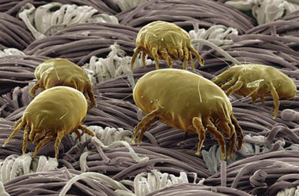 环境因素,即不同地区的过敏原也有所不同。比如:北京地区儿童常见吸入过敏原为尘螨、真菌、杂草花粉和动物毛等;北方(西北和东北)地区主要过敏原为杂草花粉;南方(华东、华中和华南)地区过敏原以粉尘螨和屋尘螨为主。另外儿童对猫毛和狗毛过敏的问题也受到关注。(下图为螨虫图像)