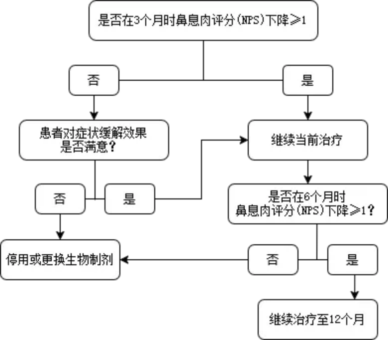 专家委员会建议,对于经充分药物和/或手术治疗后仍控制不佳的重度CRSwNP成年患者,若符合以下3项标准中的2项,可考虑生物治疗: