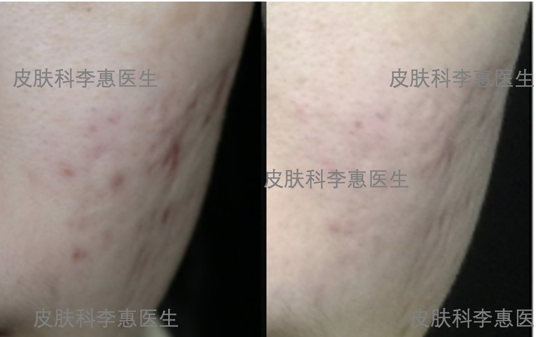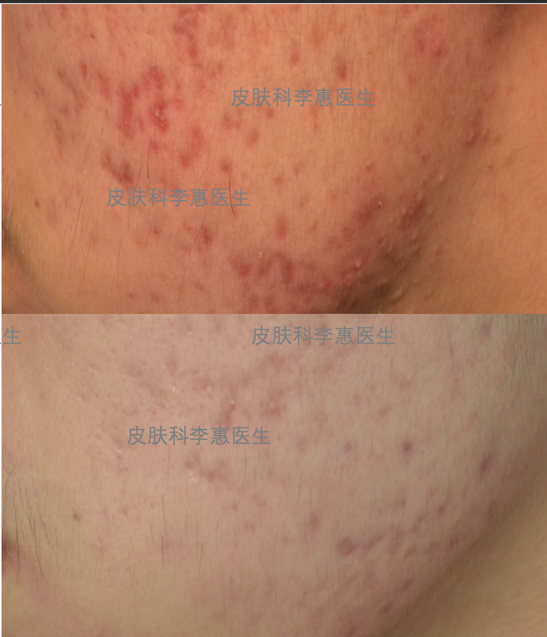 4、痘好了痘印就不产生新的,这样更科学一点,而不是盲目的先改善痘印,着急可以同时进行,不着急可以先痘后印,但是从长远来看,在治疗痘的同时就开始干预痘印、痘坑对可以降低后期的修复难度;