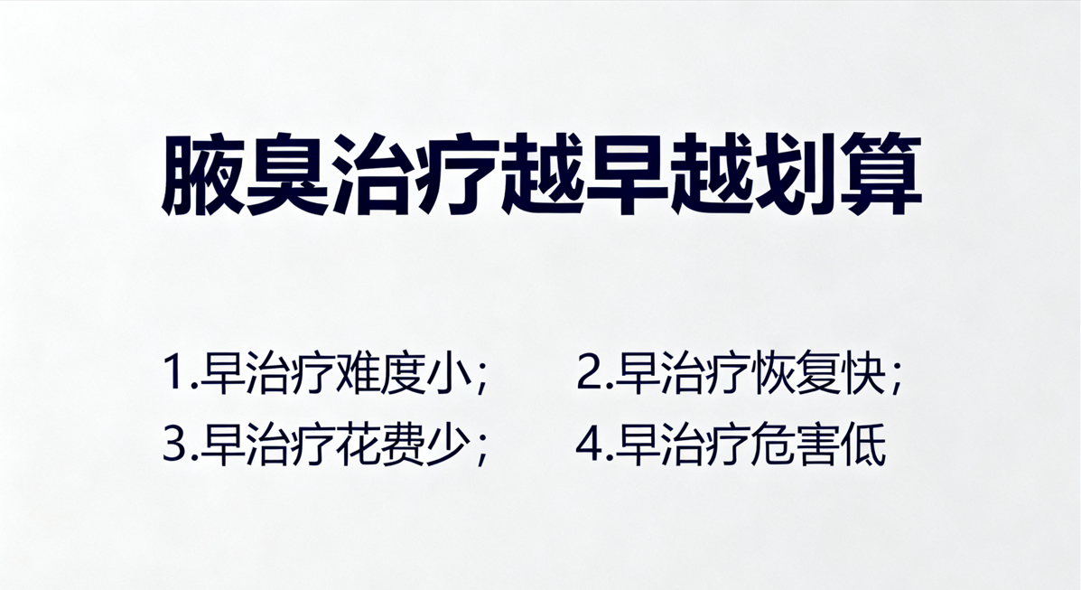 · 避免长期社交内耗:刺鼻异味会影响职场洽谈、婚恋关系,越早治疗越能节省因不自信产生的机会成本,专注于更有价值的事。