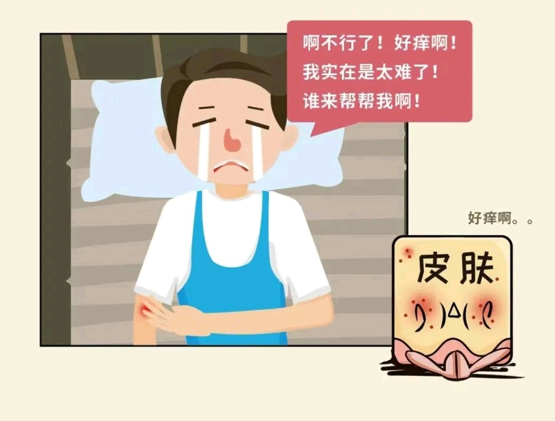皮肤症状:入睡时双臂瘙痒、如虫行皮中,醒后消失。