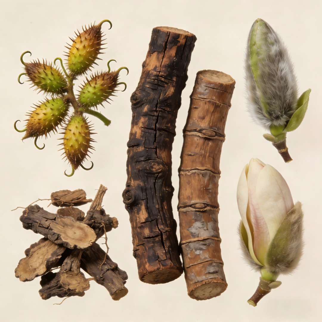 又拈起几朵毛茸茸的花苞:“这是辛夷,像不像毛笔头?它辛温芳香,专走肺胃二经,是通窍的特使。古人说它‘利九窍,通鼻塞涕出’,那些清鼻涕、黄浊涕,它都能对付。煎药时要纱布包好,免得绒毛刺激咽喉。”