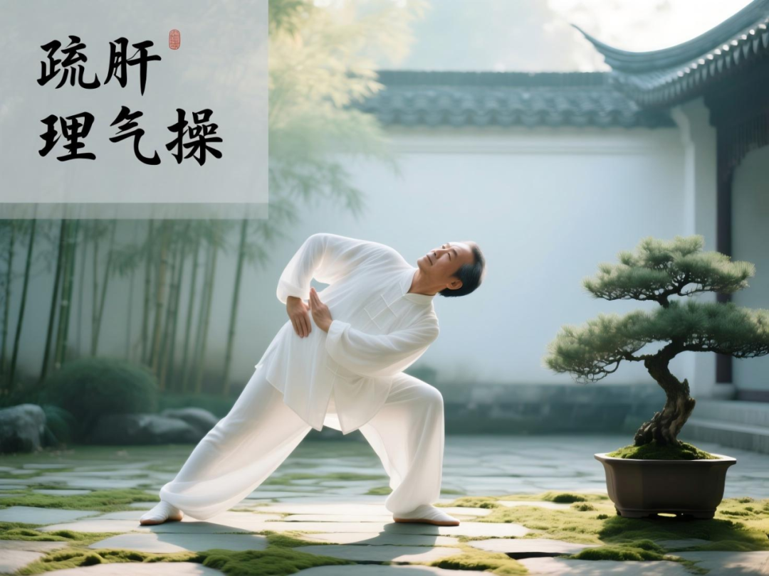 2. 导引之法:每日练习“疏肝理气操”:两脚开立,双手叉腰,深吸气时身体向一侧尽量侧弯,呼气时回正,左右交替,各做9次。