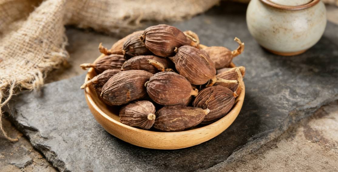 再拈起几颗褐色的果实:“这是草果,辛烈辟秽、破浊化积。湿浊顽固不化的时候,就需要一位猛将来攻坚。草果气味浓烈,能直入肠胃,把黏在肠壁上的‘浊垢’刮下来。你大便黏腻、冲不干净,就是肠道里有这种顽固湿浊,草果专门对付它。”