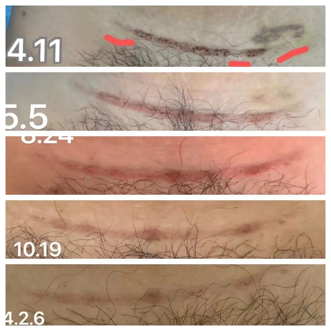 之前从来没有认真看过她的疤痕,本来是突出表面的疤痕,那次认真看了发现:两边真的消了,平了。