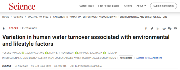 近日一项发表于权威学术期刊《Science》上的研究:他们通过分析来自26个国家的不同年龄段的5604名参与者发现,每天8杯水(约2升)对大部分人来说可能太高了,超过多数人的真正需水量,而不同年龄段、性别、国家的人的需水量其实是不同的。