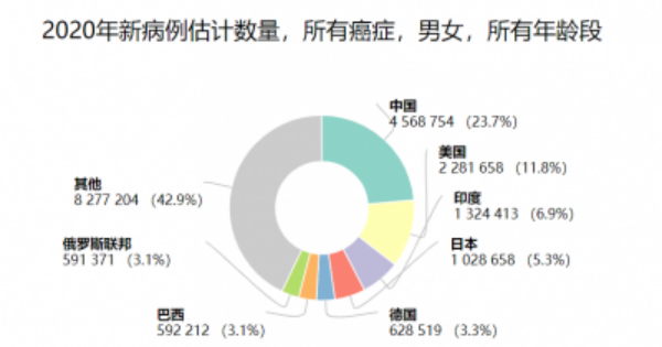 图1 2020年新病例估计数量(包括所有癌种、性别及年龄段)