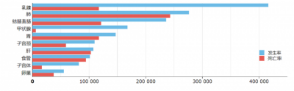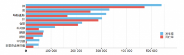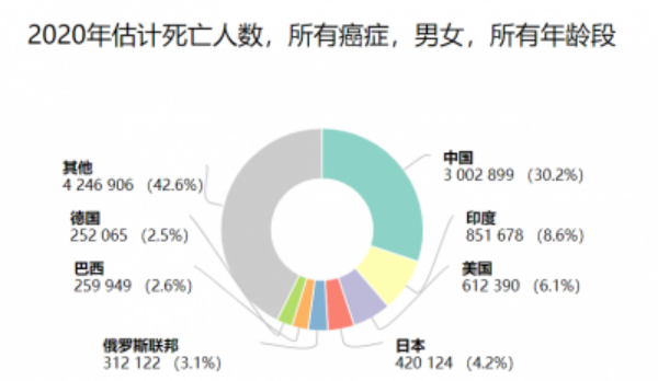 根据上图我们不难看出,中国在世界范围内的癌症发生率和死亡率均高居首位。作为时时刻刻悬在头上的“利刃”,癌症正以我们难以预计的速度侵害着我们的生活,而我们国家的人口基数庞大,中国的防癌、抗癌对全世界的健康状况都起着至关重要的作用。
