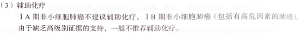 ①ⅠA期非小细胞肺癌患者接受辅助化疗并无获益,故而ⅠA期非小细胞肺癌患者术后不推荐进行辅助化疗。