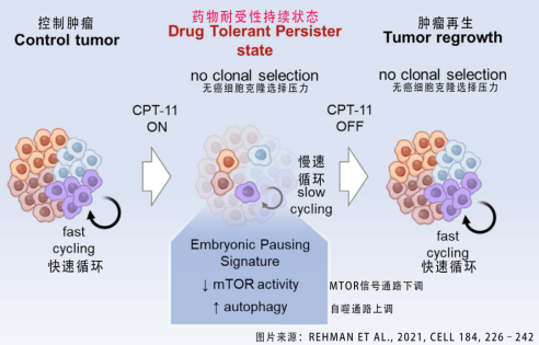 而且相应的基因分析表明,癌细胞劫持了一种生物学进化保守的“滞育”的能力。滞育是动物受环境条件所诱导的所产生的静止状态,通常发生于一定的发育阶段,比较稳定,这使得有机体在不利环境和时期更容易生存。