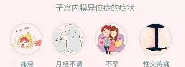 子宫内膜异位症的主要临床表现是痛经、慢性盆腔痛、月经异常和不孕。病变可以波及所有的盆腔组织和器官,以卵巢、子宫直肠陷凹、宫骶韧带等部位最常见,也可发生于腹腔、胸腔、四肢等处。
