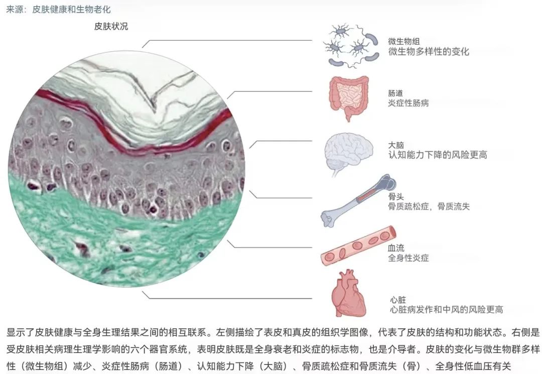 皮肤衰老不仅是外观上的变化,还与全身性健康密切相关。通过综合干预皮肤衰老,不仅可以改善皮肤健康,还可以预防多种与衰老相关的全身性疾病,提高生活质量和健康寿命。