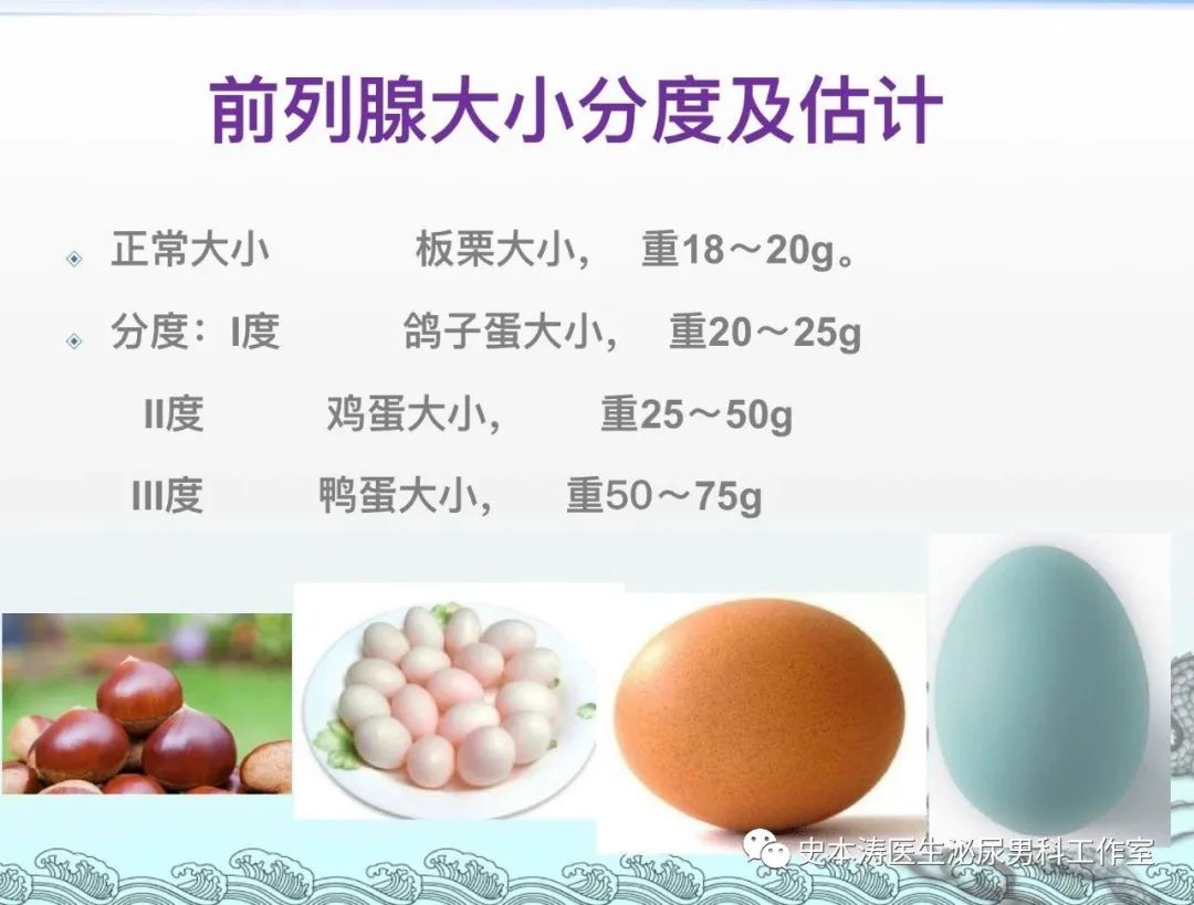 前列腺增生是中老年男性常见生理性疾病,40岁以后开始增大,大小分三度,对应轻、中、重!