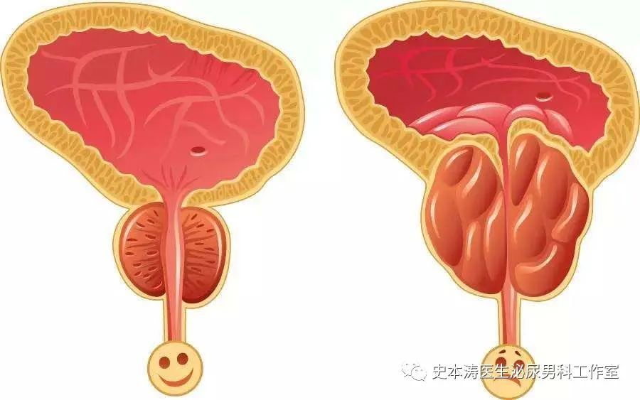 由于增大的前列腺压迫尿道,导致与排尿相关的系列症状,如排尿困难、尿不尽、尿滴沥、尿无力等,也可出现夜尿、尿频、尿急、尿痛等症状,严重影响生活质量,特别是有夜尿频症状的患者休息不好,容易诱发心脑血管疾病;尿急可能导致意外,如跌倒骨折等。