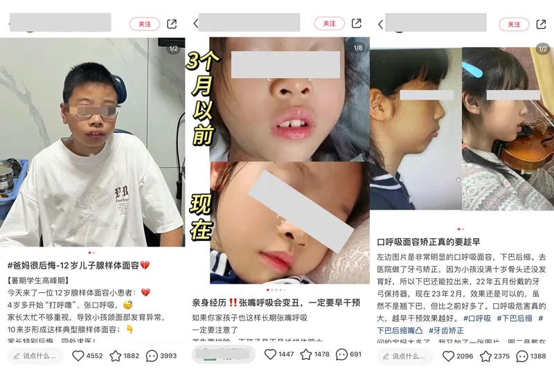 大家上某书随便搜一下“口呼吸”,就能看到40w+的帖子涌出来,不少家长因为孩子的面容改变而焦头烂额。