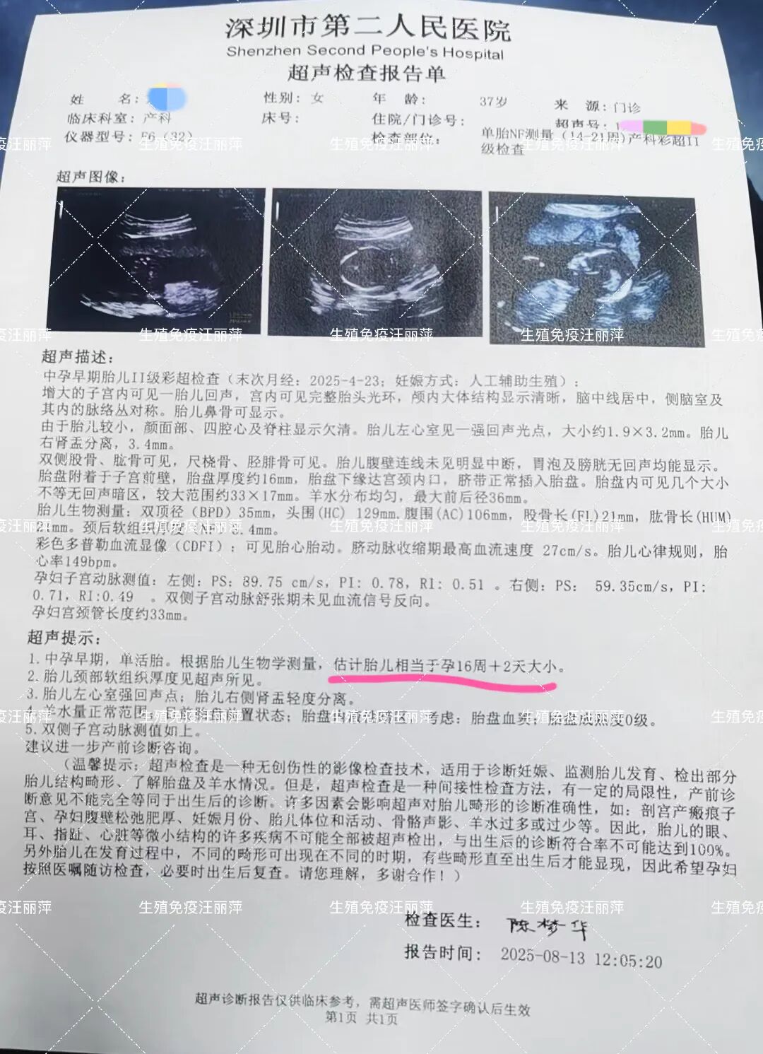 幸运的是,这一次胚胎稳稳地着床了!B超看到了胎心胎芽,NT检查也顺利通过。现在她正在安心养胎,宝宝一切正常。
