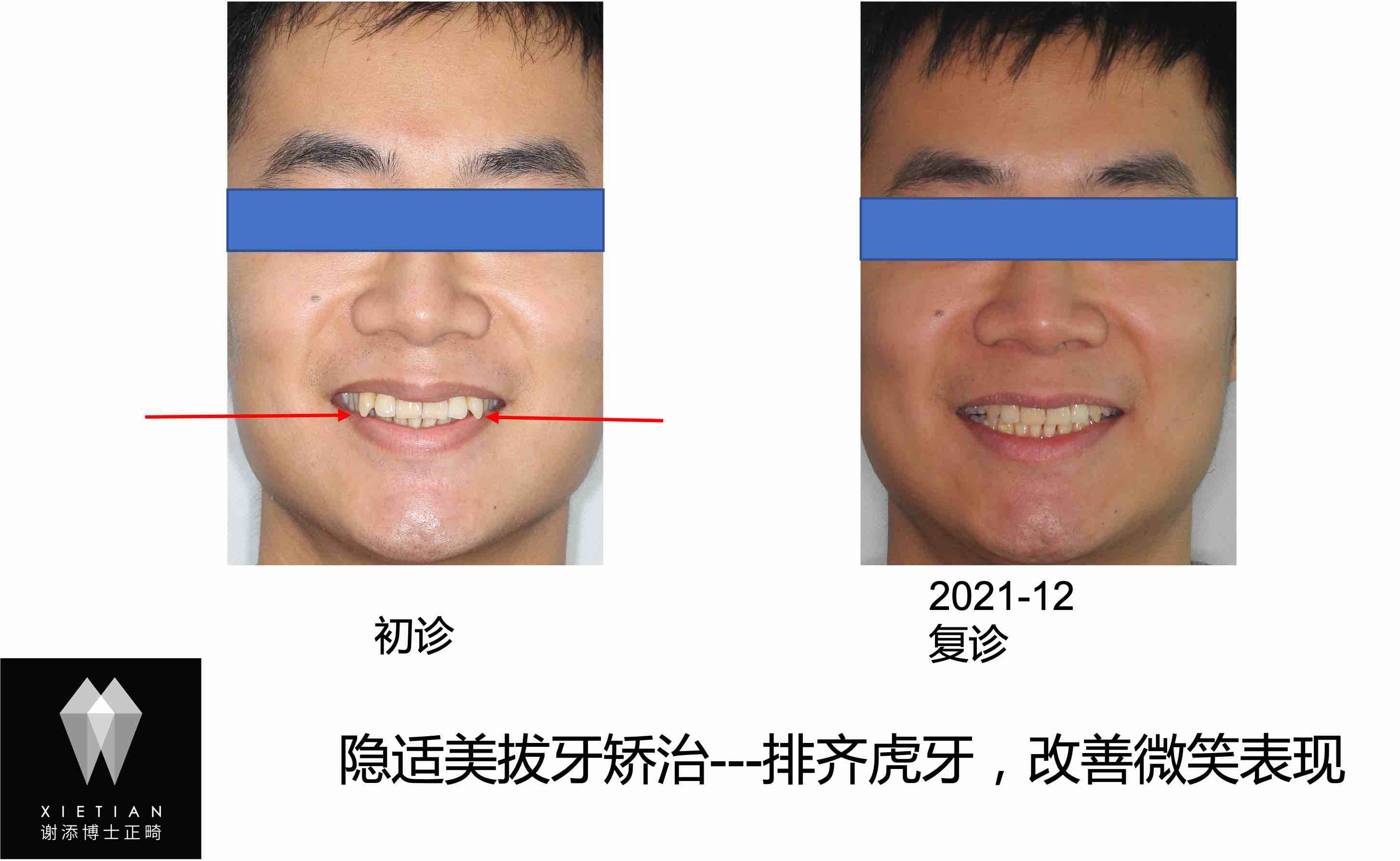 今天分享的这位帅哥,因为虎牙不齐来矫正,选择的是隐形牙套,很快解决了虎牙不齐的问题。