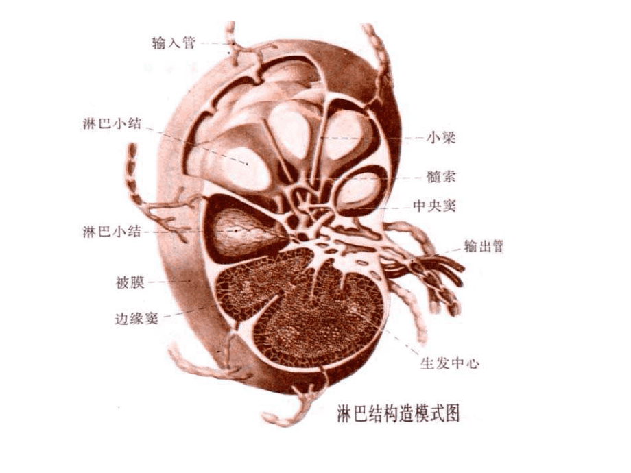 我们人体存在两套循环系统,一套是我们最熟悉的血液系统,它们负责运送养分到达细胞,在把细胞内的废物运出去排泄。而另一套就是淋巴循环。淋巴循环主要由淋巴管以及淋巴结组成,运送的是一些长链脂肪酸等营养物质,还能运送一些免疫细胞,如巨噬细胞、淋巴细胞、抗体等,还有一个重要的功能,就是吸收一些病原体(细菌)、毒素等。淋巴结就是在淋巴循环中的一个个的车站,其内部聚集了很多免疫细胞,如果流经淋巴结的淋巴液里有病原体,淋巴结可以将其清除、杀灭。如果病原体数量多或者威力大,淋巴结还能产生各种免疫细胞来对抗病原体。