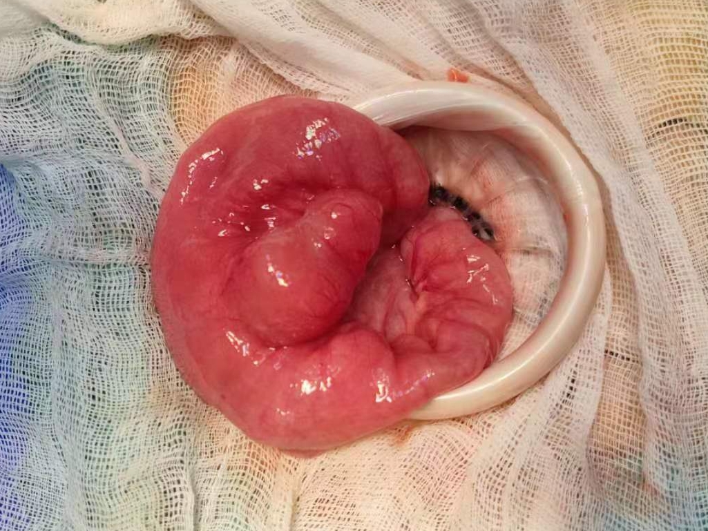 二、肠梗阻、肠扭转坏死。前几个月,有个1岁的小女孩,中午吃奶的时候突然就大哭起来,边哭变捂着肚子,哭的撕心裂肺。可是没过几分钟就不哭了,还能继续吃奶,还能在蹲在地上玩耍。又过了一会,孩子又开始说肚子疼,这个说完肚子疼以后就开始慢慢没有精神,出现呕吐,肚子胀,家长把孩子送到医院,这个时候孩子已经对周围的刺激没有什么反应了。检查发现孩子有小肠梗阻以及肠扭转,急诊手术发现是因为美克尔憩室导致的肠扭转肠坏死,所幸坏死的肠管不多,手术后孩子很快就恢复了。美克尔憩室有的时候会在头端残留一条纤维性的索带,它和我们的腹壁可以形成一个环形的套索,小肠在蠕动的时候就会钻进这个套索,当钻进去的小肠越来越多,就会被这个套索勒住,从而扭转、缺血、坏死,严重的可是会危及生命的。