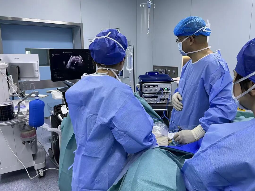 第二步“扫清埋伏”:进行微波消融+聚桂醇消融对子宫腺肌症进行处理。