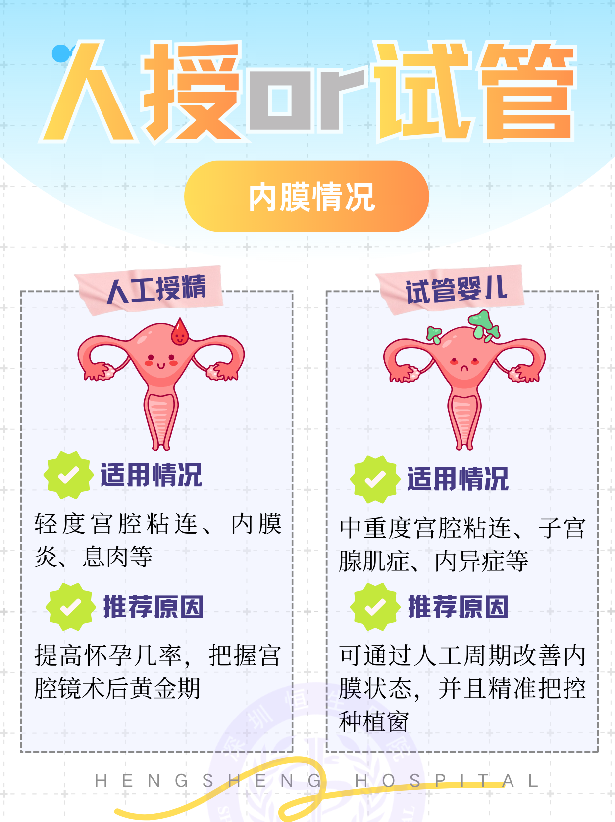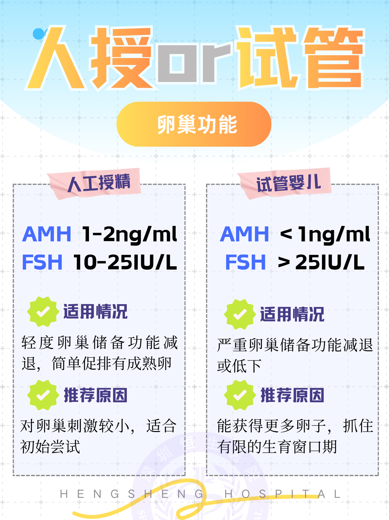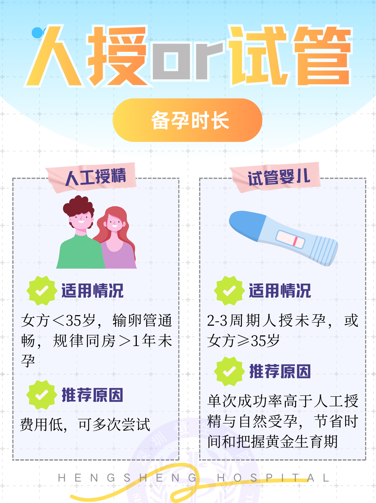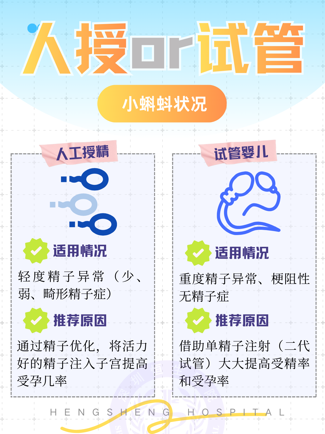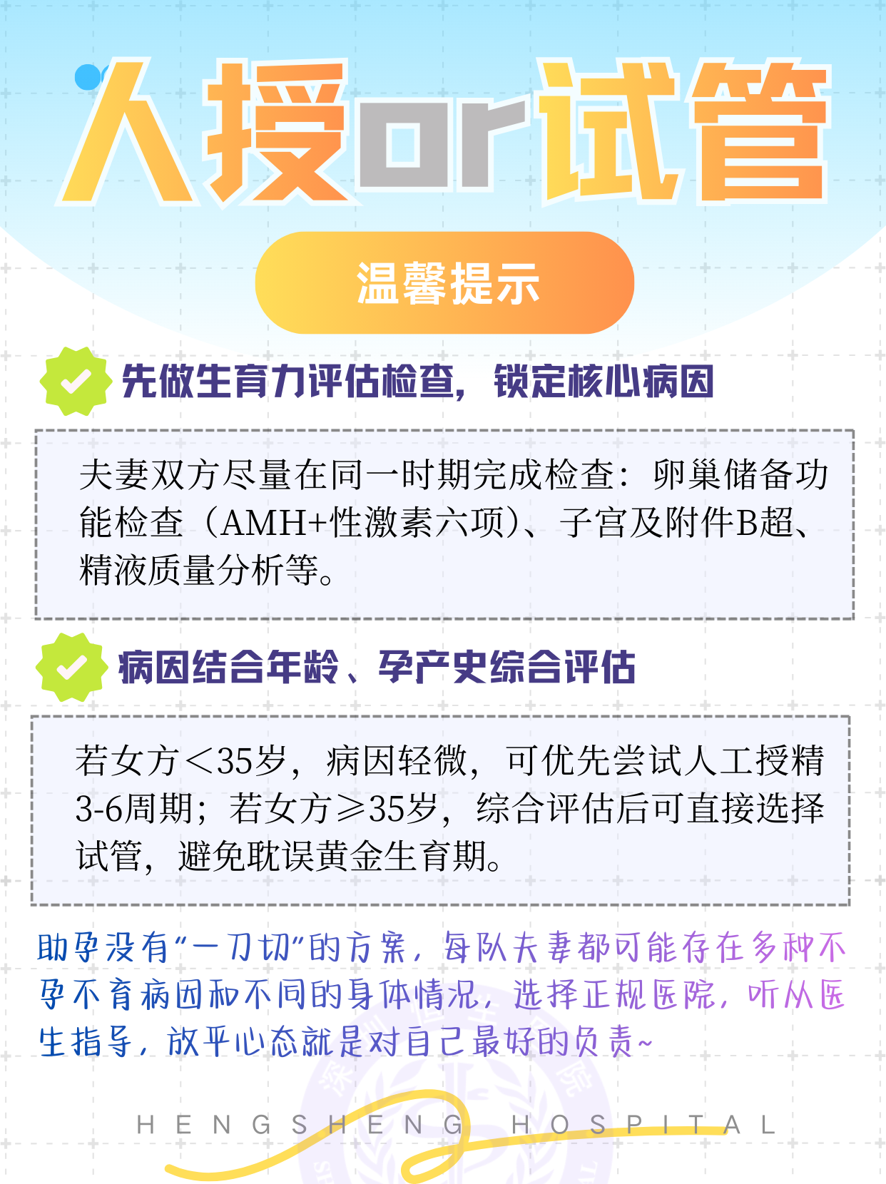 人工授精和试管婴儿都是目前非常成熟的辅助生殖技术,两种方式没有绝对的优劣,适合自己的才是最好的!本文叫你从不同维度,快速查看自己和队友适合选择人工授精还是试管婴儿~ 助孕没有一刀切的方案,每对夫妻都可能存在复杂、交错的不孕不育问题,放平心态,选择正规的医院就诊,听从大白的安排,好孕自然就会降临啦!