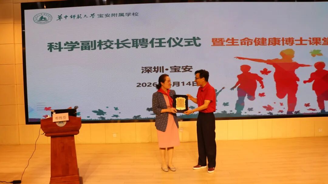 4月14日,华中师范大学宝安附属学校举行科学副校长聘任仪式,正式聘请深圳恒生医院生殖医学科邓伟芬主任为科学副校长。