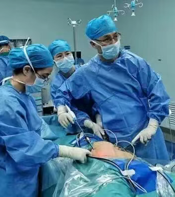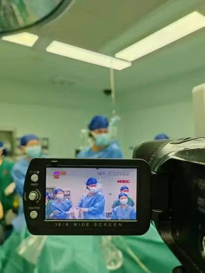 康楷正在为全国的妇产科同道进行单孔腹腔镜手术直播