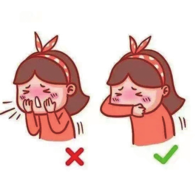 用纸巾或手肘内侧遮住口鼻,防止飞沫传播。用过的纸巾立即丢弃并洗手。