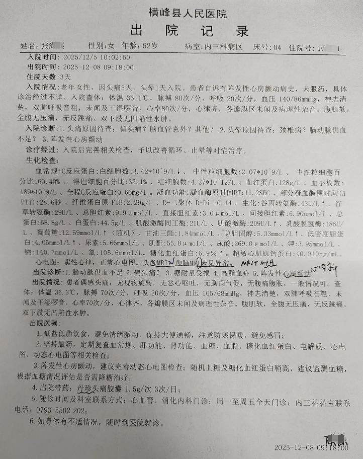 中医诊断:头痛(气滞血瘀)