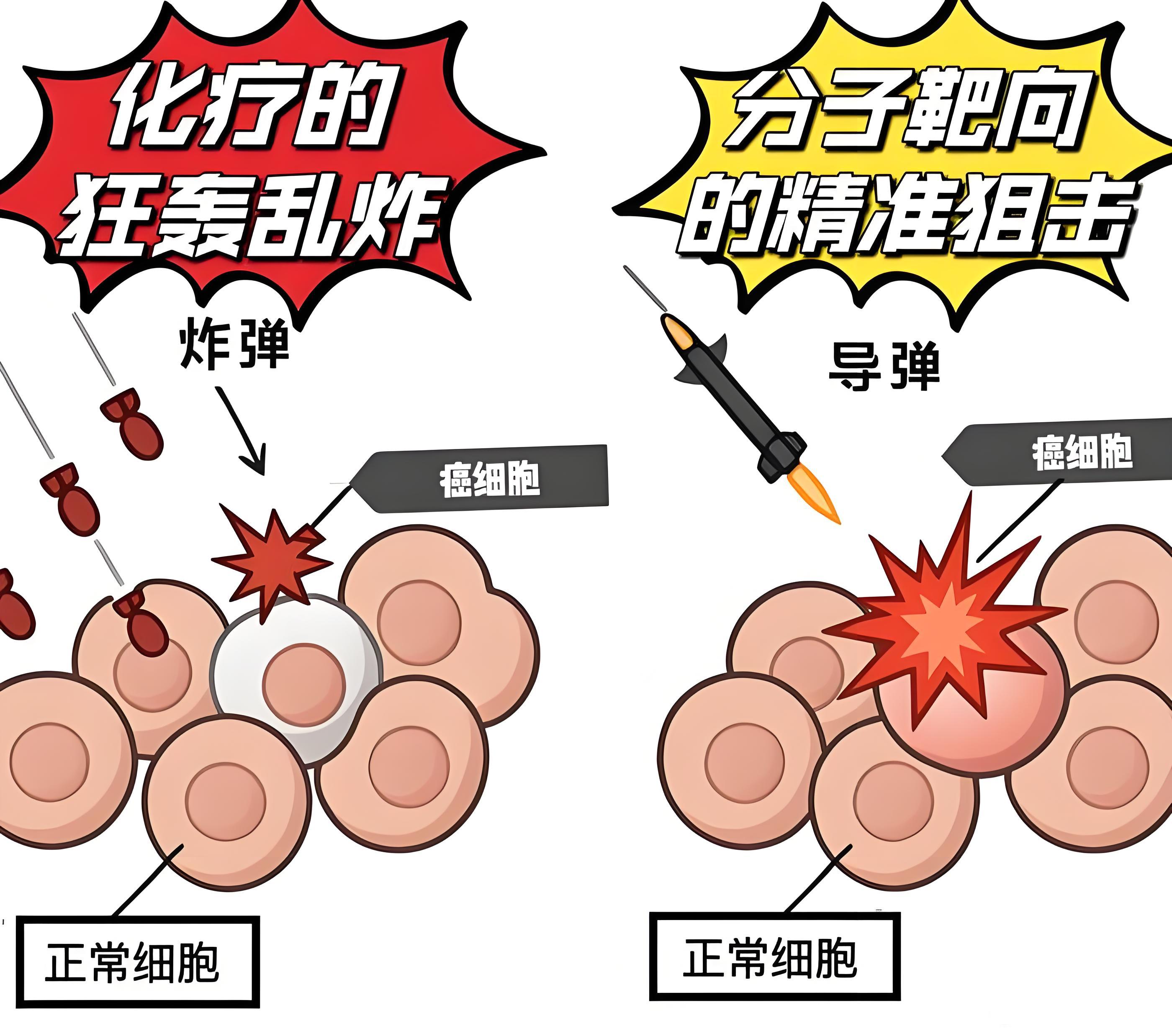 想象一下,化疗如同在黑暗房间里扫射——子弹能打中坏人,也会伤及无辜;而靶向治疗则像装了红外瞄准镜的狙击枪,能精准锁定癌细胞这个“头号通缉犯”。这个形象的对比,正是靶向治疗与化疗的本质区别。