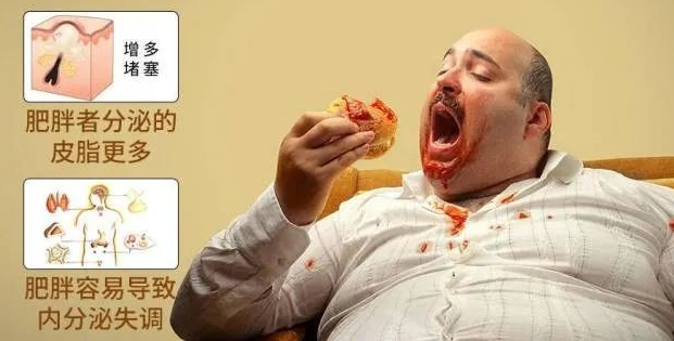 肥胖者比正常体重的人,皮脂溢出约增加40%。其中面部与头皮油脂分泌最多,会带来真菌滋生、压迫毛细血管等问题,从而加重脱发的产生。