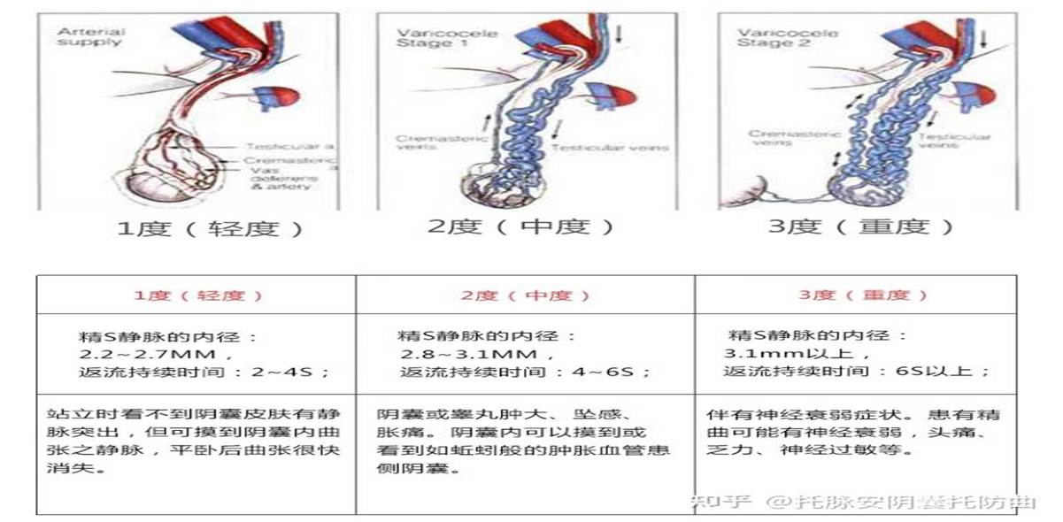 Ⅲ度:超声测量精索静脉内径≥3.1mm,Valsalva动作时反流时间≥6秒。