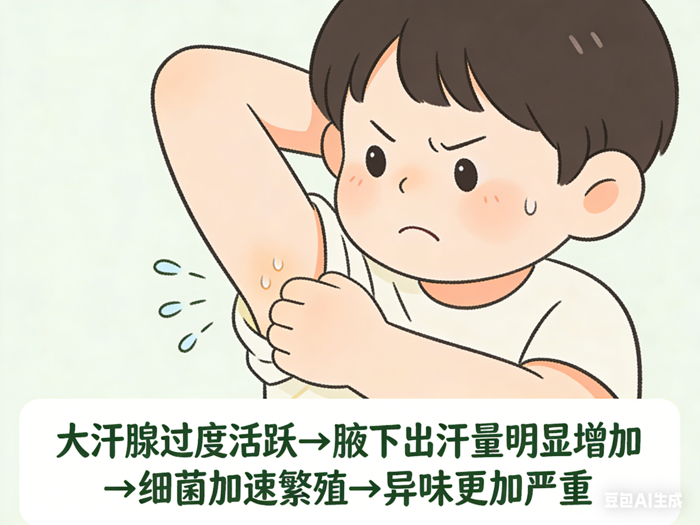 · 前兆一:出汗异常增多:腋下出汗量显著增加是腋臭加重的最早信号之一。即使在没有明显高温或剧烈活动的情况下,腋下区域也频繁潮湿。这种异常多汗不仅为细菌繁殖提供了湿润环境,更意味着腋下大汗腺可能处于过度活跃状态。
