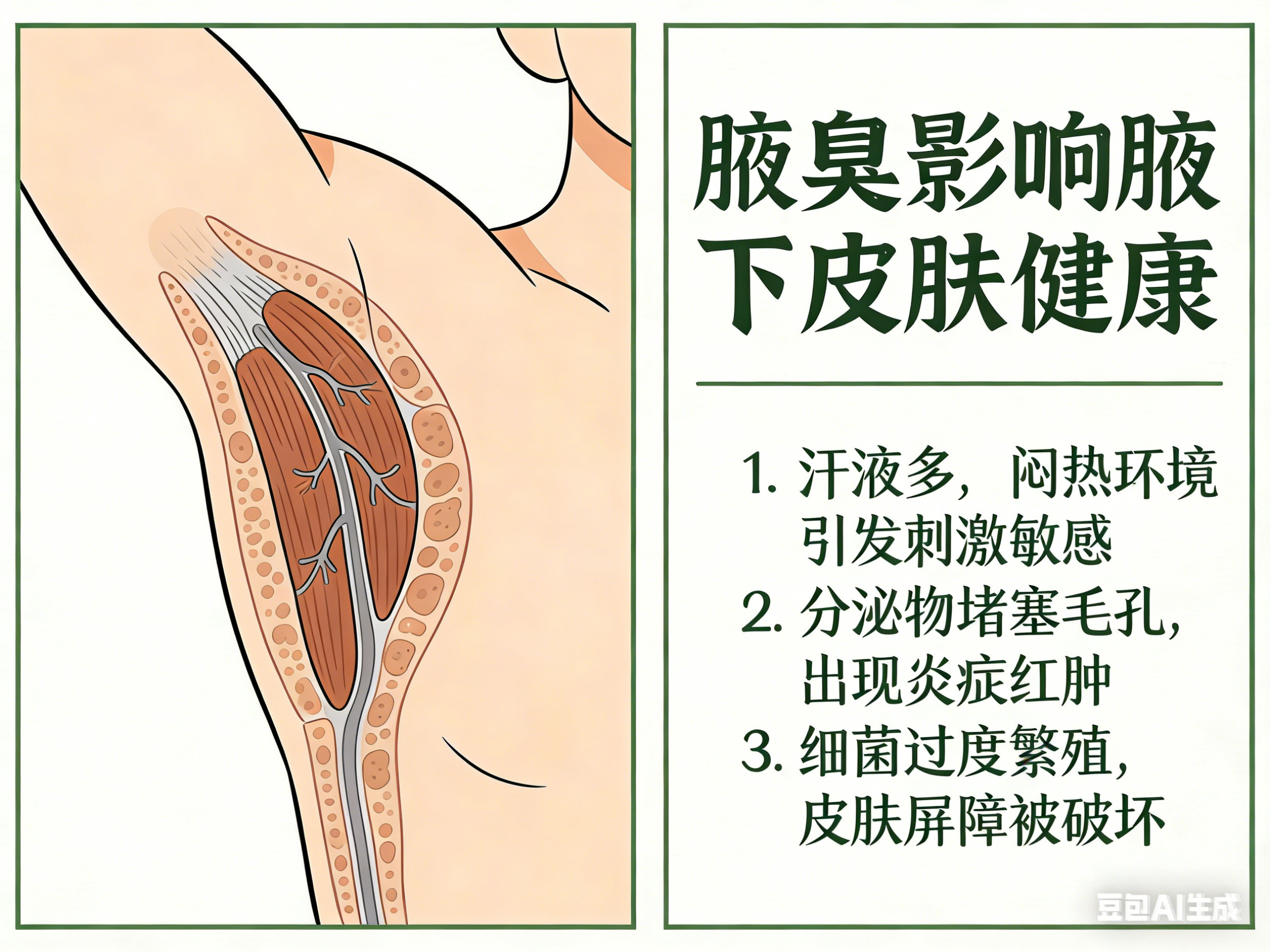 · 前兆四:皮肤状况改变:腋下皮肤出现轻微发红、刺激感或毛囊炎症状,也可能是腋臭加重的信号。细菌过度繁殖不仅产生气味,还可能引起皮肤轻微炎症反应。
