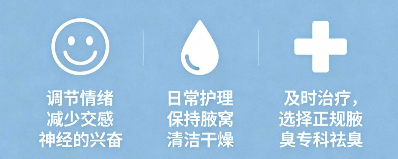 识别这些前兆后,可采取以下措施防止腋臭进一步加重:1. 加强清洁:使用温和抗菌沐浴产品,出汗后及时清洁;2. 选择合适衣物:穿透气性好的天然纤维衣物;3. 调整饮食:减少辛辣食物、洋葱、大蒜及含咖啡因饮料的摄入;4. 管理压力:学习放松技巧,因压力会刺激大汗腺分泌;5. 及时治疗:选择正规腋臭专科进行科学有效的专业评估和治疗