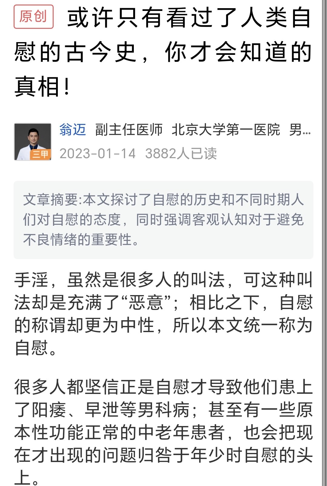 首先,不排除该患者由于两性知识的匮乏以及对自慰的认知误区(详见