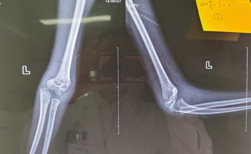 该患者的情况跟小红的一样,都是治疗不规范引起的肘内翻畸形。该病例虽然年龄较小,但肘内翻畸形严重,保守治疗2年后未见明显改善,遂于行手术治疗。