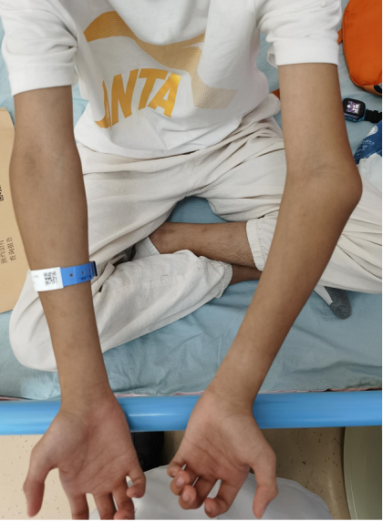 病例1:小明(化名)、男、12岁,8年前因摔伤致“左肱骨髁上骨折”,于外院行手术治疗,手术后逐渐发生左肘内翻畸形。