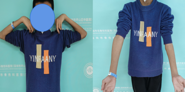 病例2:小红(化名)、女、9岁,3年前因摔伤致“左肱骨髁上骨折”,于当地诊所行手法复位夹板外固定,夹板固定一个月拆除外固定后逐渐发生左肘内翻畸形。
