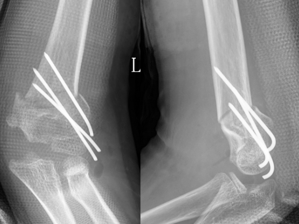 术后X线片示肘内翻矫正满意