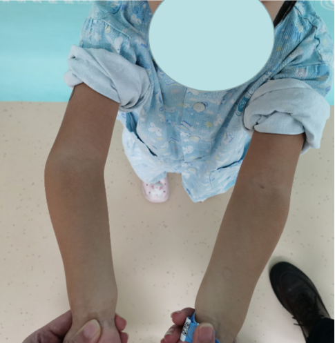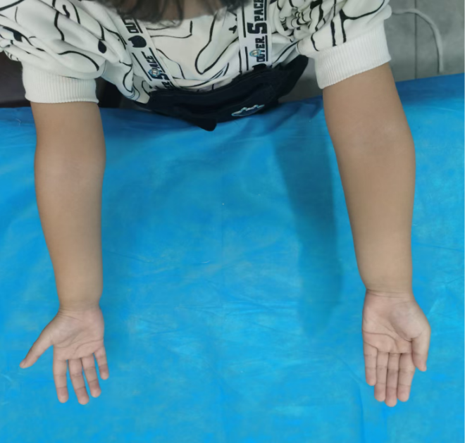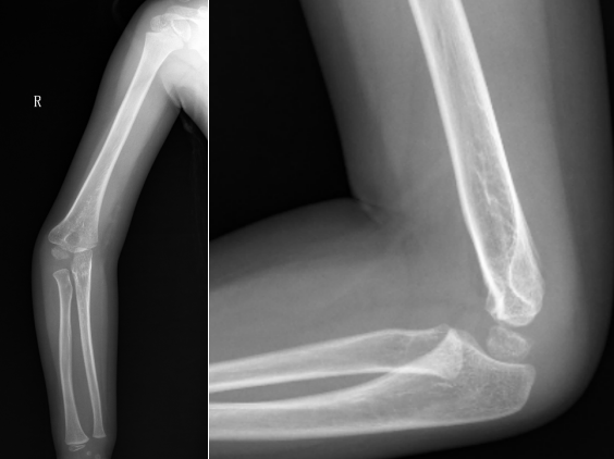 病例3:小玉(化名)、女、4岁,2年前因摔伤致“右肱骨髁上骨折”,于当地医院行手法复位石膏外固定,石膏固定一个月拆除外固定后逐渐发生右肘内翻畸形。