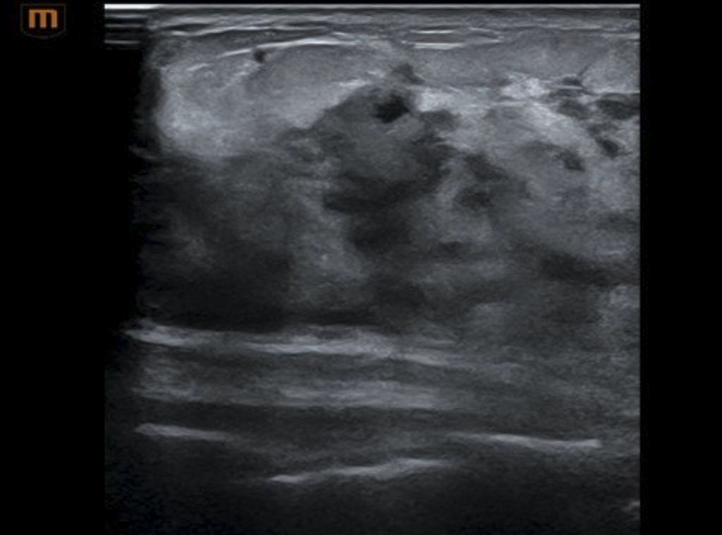 此时的乳腺组织致密、血流丰富、内部结构乱七八糟。肿瘤藏在里面,就像暴雨天在一堆灰色乌云里找一片颜色只深一丢丢的乌云——探头扫过去,很容易觉得“还行,挺正常的”。