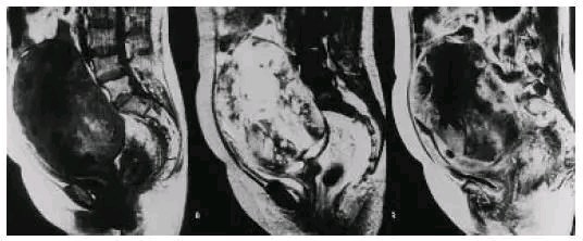 子宫肌瘤良性变的时候的增强延迟显像的MRI图像