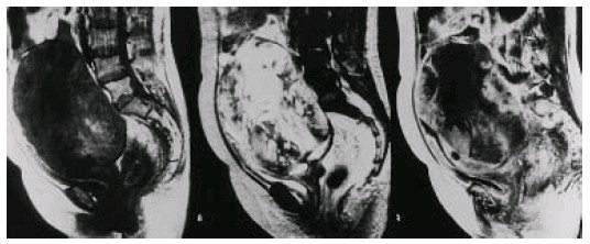 那么现在,我们是否有一个办法可以来了解子宫肌瘤是否有恶变呢?作为一个临床医生,必须要时刻关注着世界上这个领域内的研究进展,2002年,来自日本的研究者做了一项影响业界的研究,文献发表在国际妇科肿瘤杂志上。他们采用了增强延迟显像核磁共振检查的技术,结合血清乳酸脱氢酶(LDH)同工酶3的检查,发现10例子宫肉瘤的患者,在核磁共振60秒增强的图像中,10例患者都可以观察到有延迟增强的影像,而子宫肌瘤良性变性的患者,32例中仅有4例出现延迟增强的表现。10例子宫肉瘤的患者都有LDH和LDH同工酶3的升高。这个研究提示,如果联合采用增强延迟显像核磁共振检查和LDH检测,将会有助于鉴别子宫肉瘤和子宫肌瘤的良性变性。