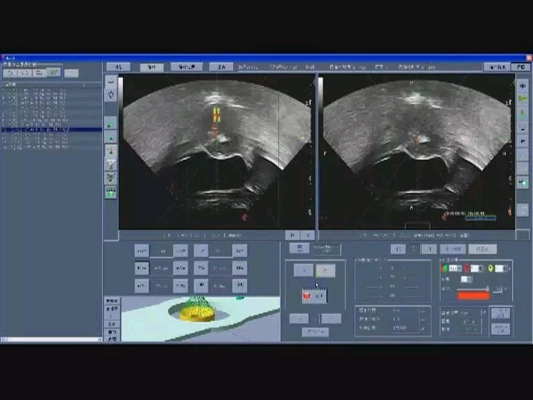 核磁共振监测下的治疗有一个超声监测下治疗没有的优势,就是温度监测,核磁共振可以实时显示出治疗区的温度,而当局部组织温度达到65度的时候(视频中颜色变成绿色),而到治疗超过限定范围的时候,可以紧急按下停止键,避免过度的损伤,我们对于未生育子宫肌瘤治疗的原则是宁可残留不要损伤。
