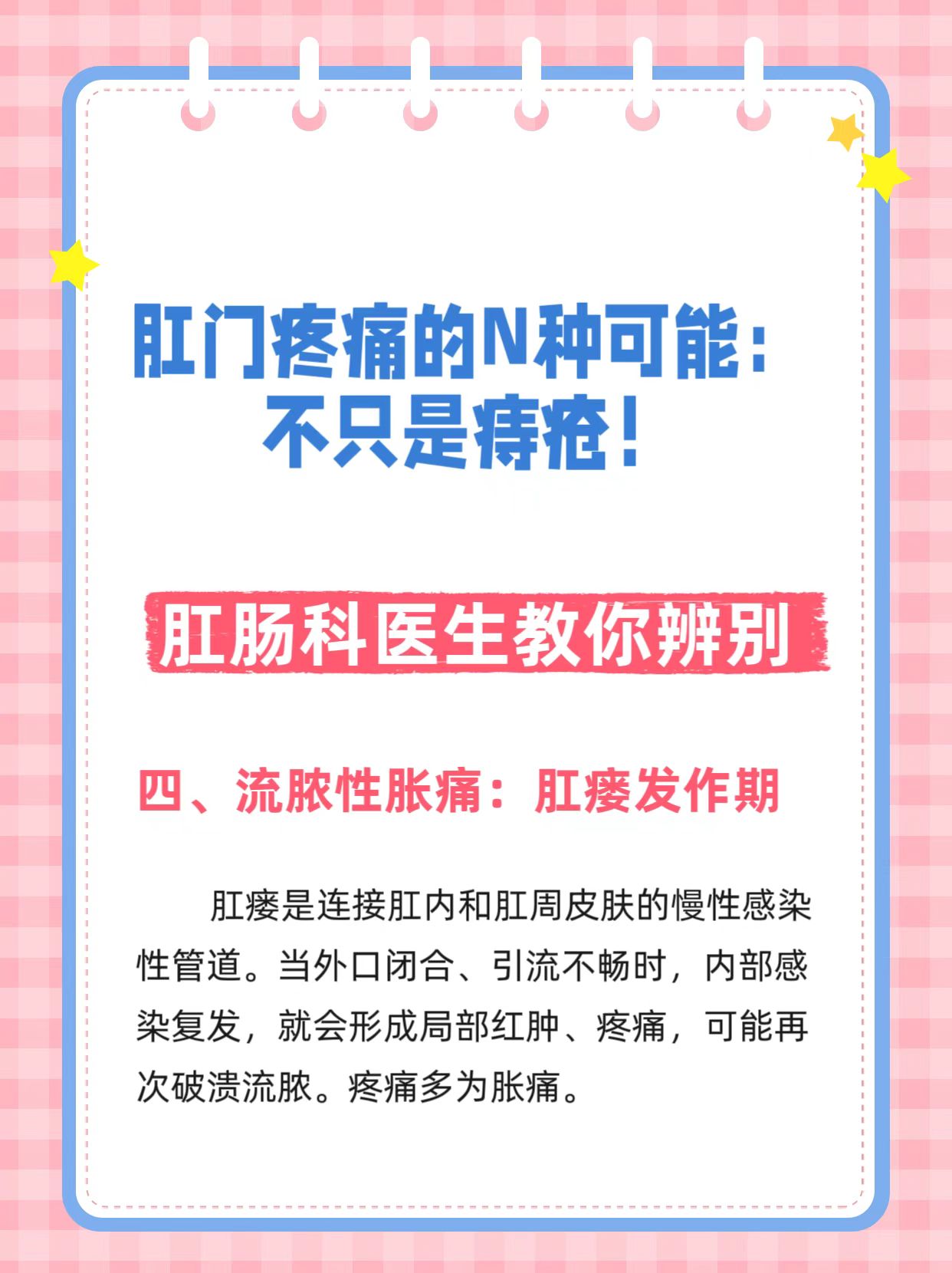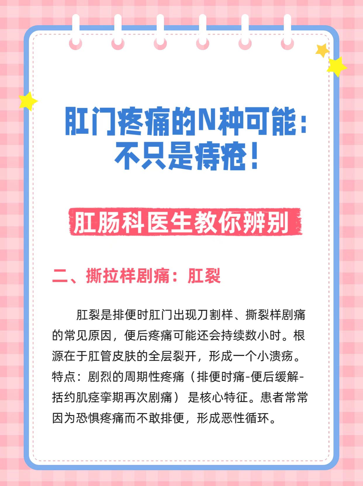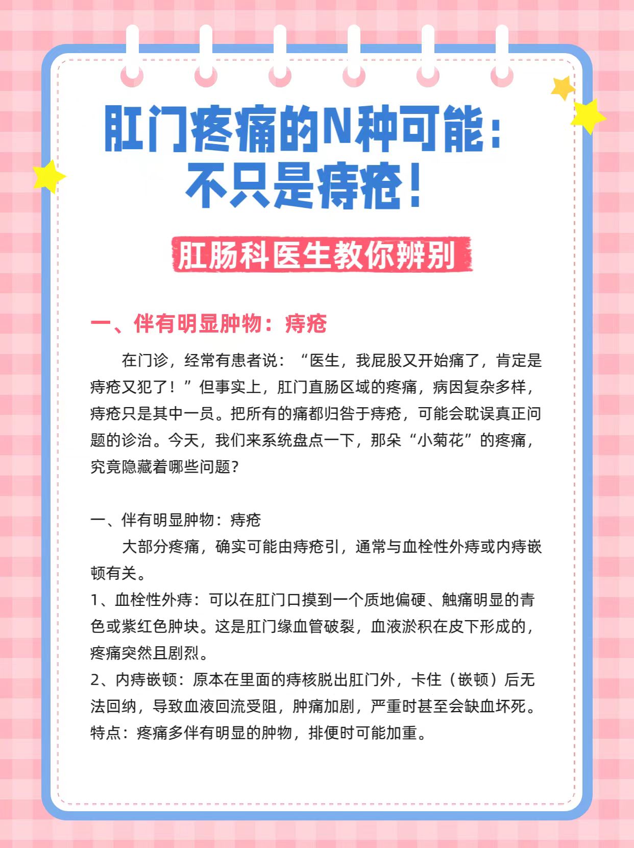在门诊,经常有患者说:“医生,我屁股最近好痛,是不是痔疮犯了!”但事实上,肛门直肠区域的疼痛,病因复杂多样,痔疮只是其中一员。把所有的痛都归咎于痔疮,可能会耽误真正问题的诊治。今天,我们来系统盘点一下,那朵“小菊花”的疼痛,究竟隐藏着哪些问题?
