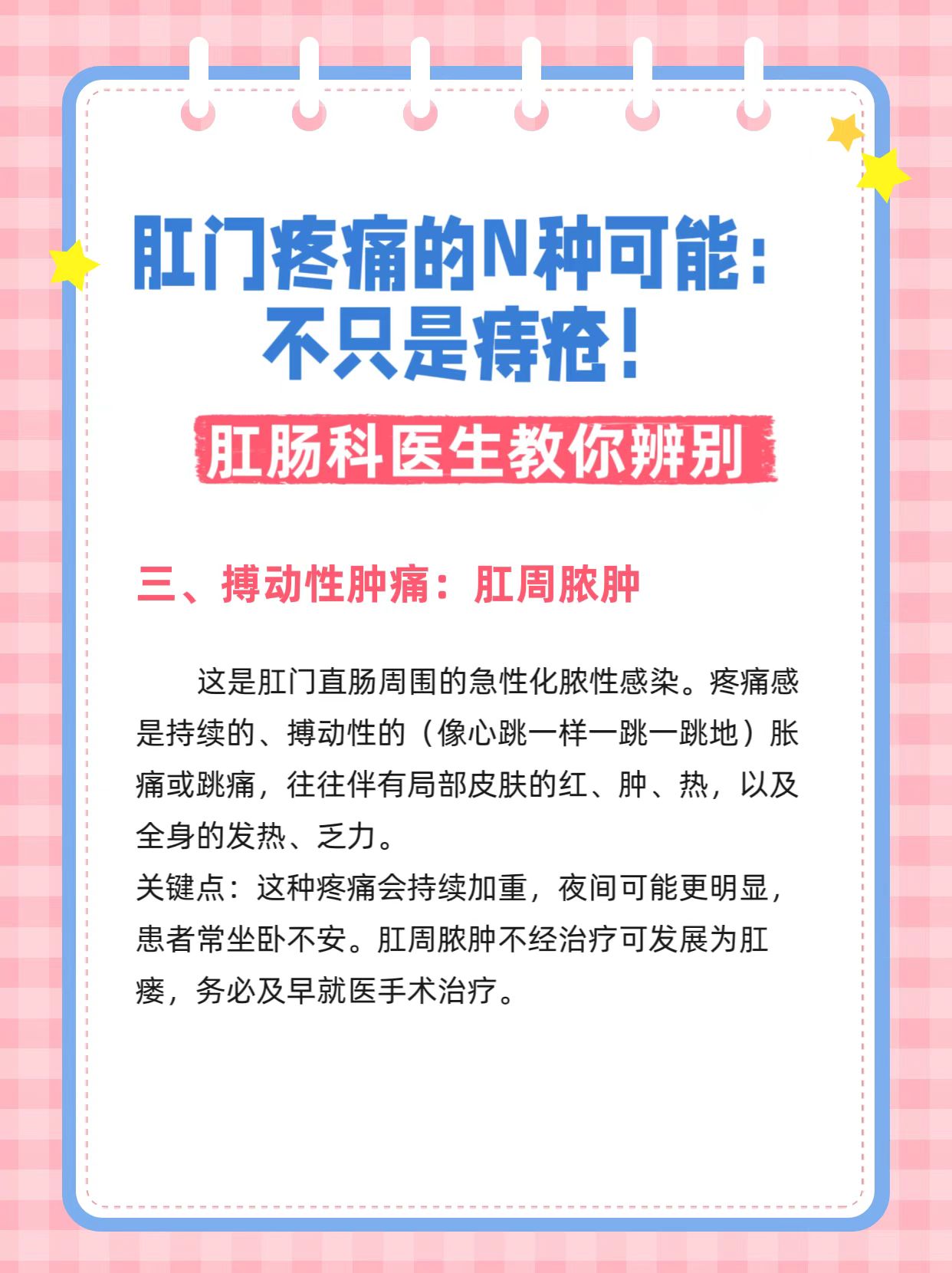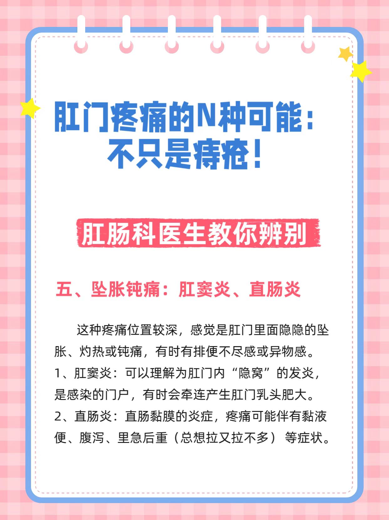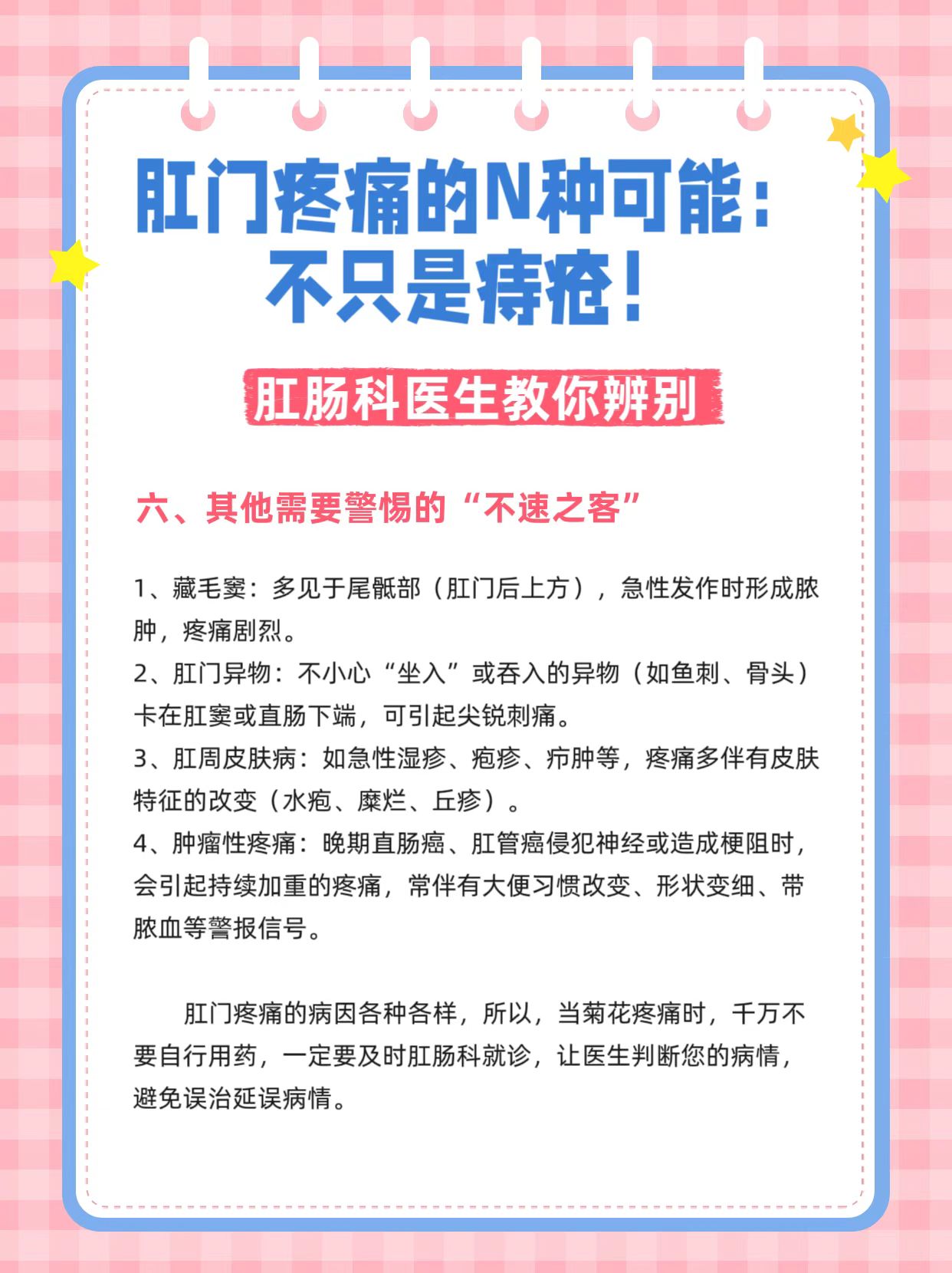 在门诊,经常有患者说:“医生,我屁股最近好痛,是不是痔疮犯了!”但事实上,肛门直肠区域的疼痛,病因复杂多样,痔疮只是其中一员。把所有的痛都归咎于痔疮,可能会耽误真正问题的诊治。今天,我们来系统盘点一下,那朵“小菊花”的疼痛,究竟隐藏着哪些问题?