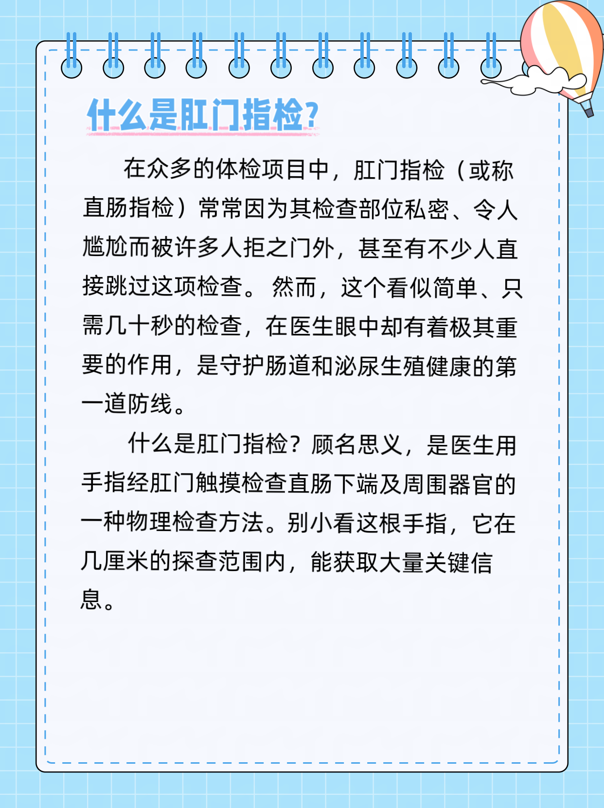 体检项目中的“肛门指检”,是许多人最想跳过的一项。因部位私密带来的尴尬与不适,让它成了主动放弃率最高的检查之一。但您可能不知道,这个让受检者皱眉、只需一两分钟的简单操作,在肛肠科医生眼中却至关重要。今天,就让我们一起来了解这个不可替代的体检项目。