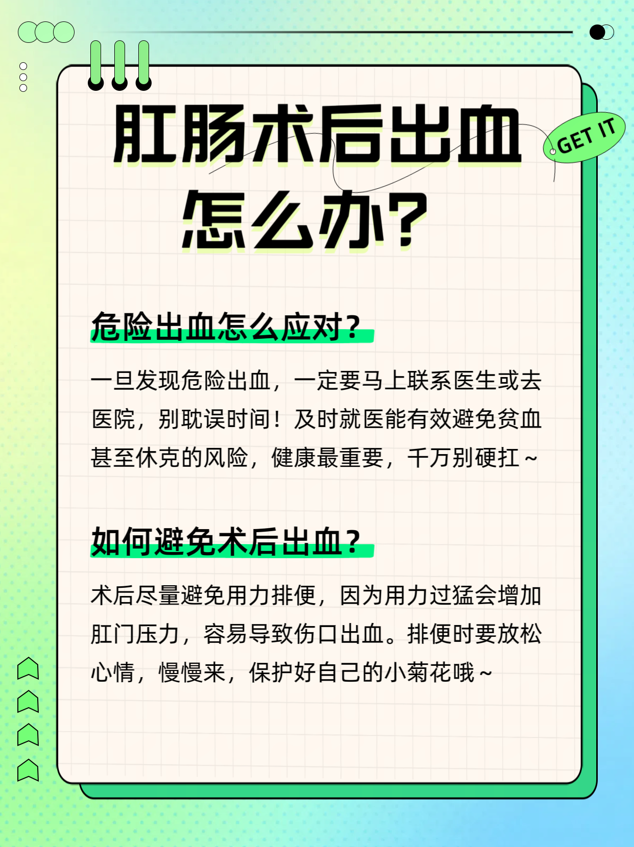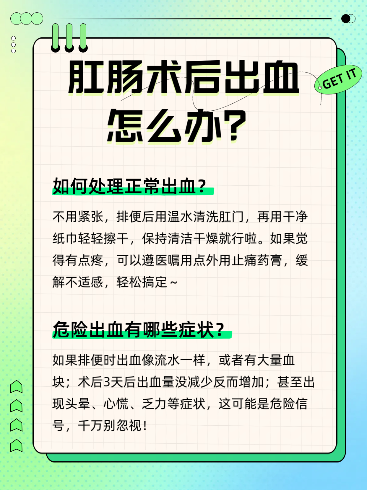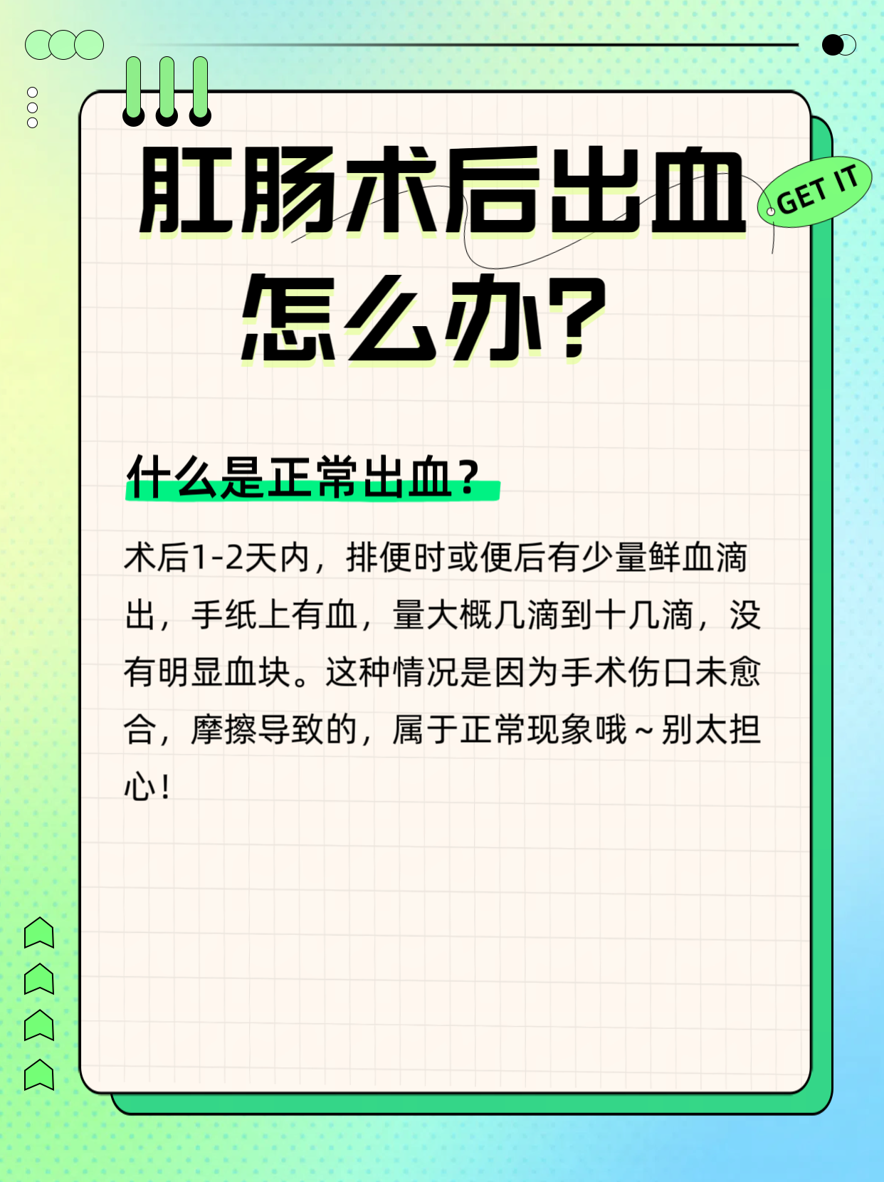 刚做完肛肠手术,却在厕所里“惊喜地”发现血迹?先别慌张!术后少量出血其实是愈合过程中常见的“小插曲”。但如何判断它是正常的渗血还是危险信号?这份指南将带你全面了解术后出血的真相,从自我判断到应急处理,让你安心度过恢复期,避免因过度紧张或盲目处理而影响康复速度。